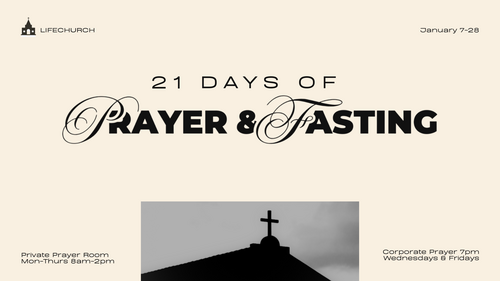 Thank you for prayerfully considering your commitment to Fire & Glory Days. We'll start out the year with 21 days of prayer and fasting here at LifeChurch West Chester. Througout the year, there will be other times we come together for prayer & fasting.